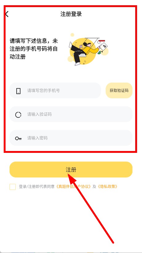 4、输入手机号、验证码、密码,勾选同意相关协议后,点击注册按钮,即可完成注册。