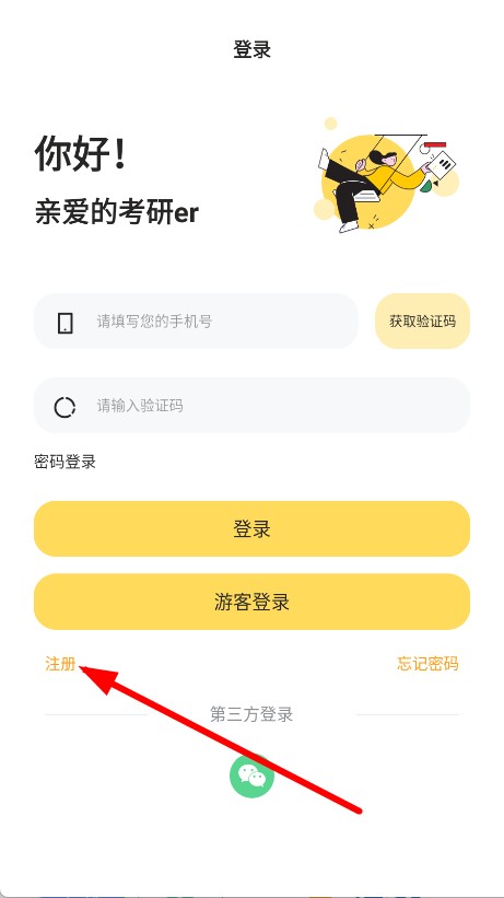 3、在登录页面,点击注册选项,进入注册登录页面。