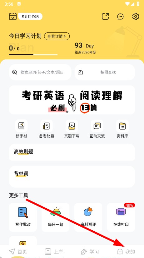 1、基础阶段同步真题学基础:在考研英语基础复习阶段,每天通过选择一套真题的部分题型,逐题作答后查看翻译与解析,遇到陌生单词添加到词库,提升基础能力与真题认知。