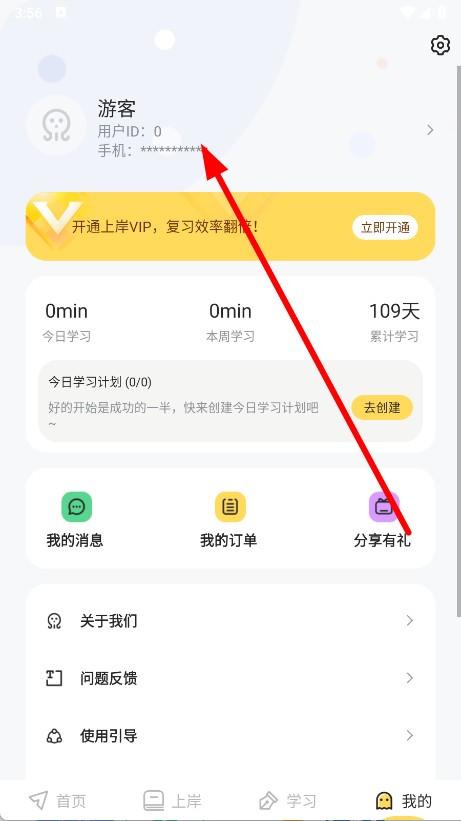 2、在个人中心页面,点击游客区域,进入登录页面。