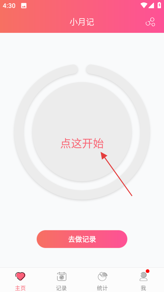 1、进入小月记主页,点击点这开始,进入日期选择页面。