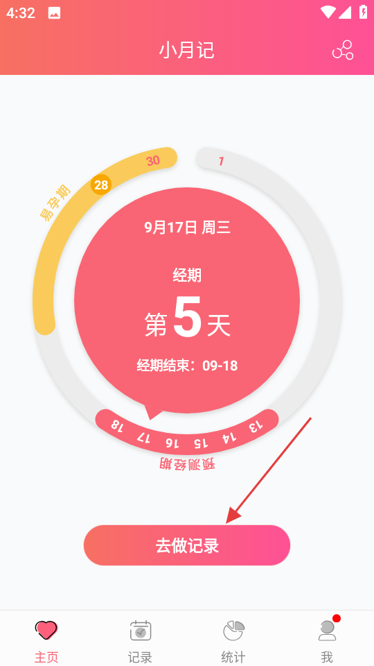 3、进入周期展示页面后,点击去做记录,进入记录详情页面。