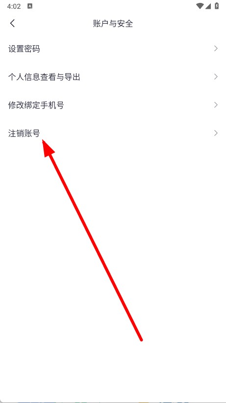4、在账户与安全页面,点击注销账号选项,进入注销账号说明页面。