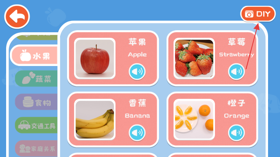 1、选择学习主题:根据孩子的兴趣和学习需求,从分类中选择相应的学习主题,如动物、食物等,开启针对性学习。