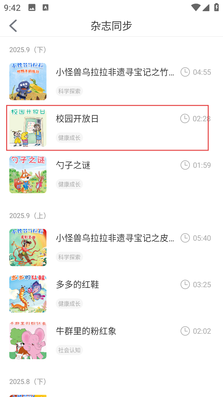 3、在杂志同步页面,点击校园开放日条目,进入该内容的播放页面。