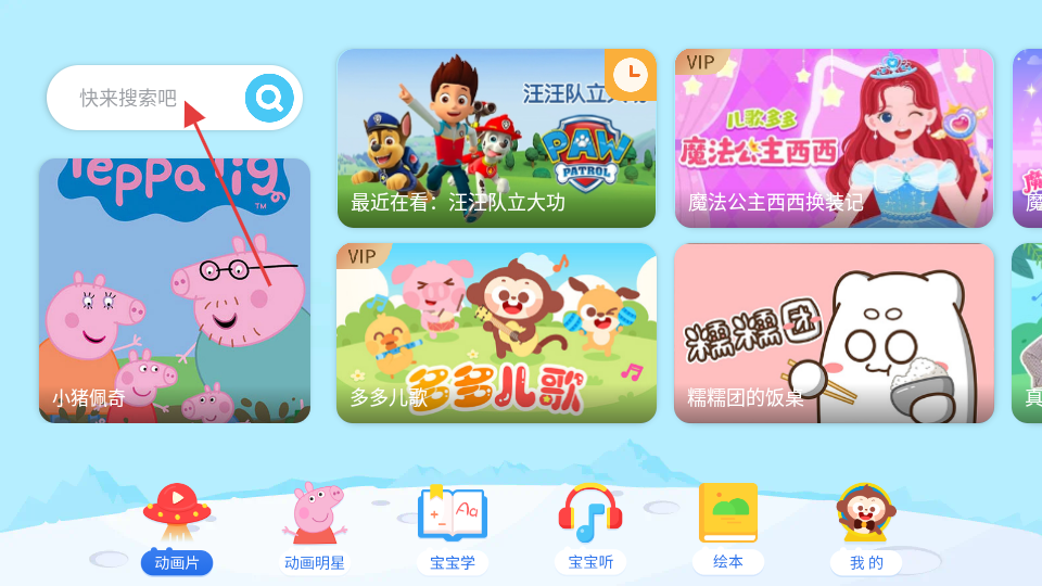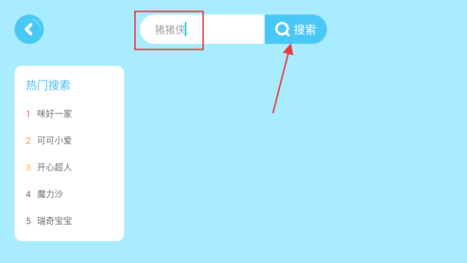 2、在搜索框中输入想看的动画片,如猪猪侠,然后点击搜索按钮。