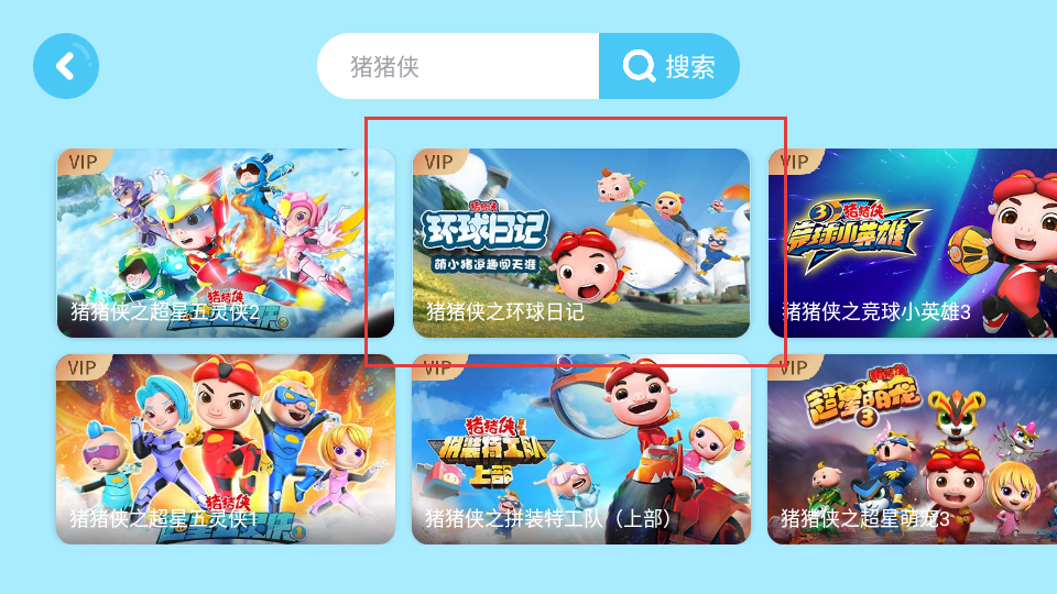 3、在搜索结果中,选择想要观看的相关内容,比如猪猪侠之环球日记。