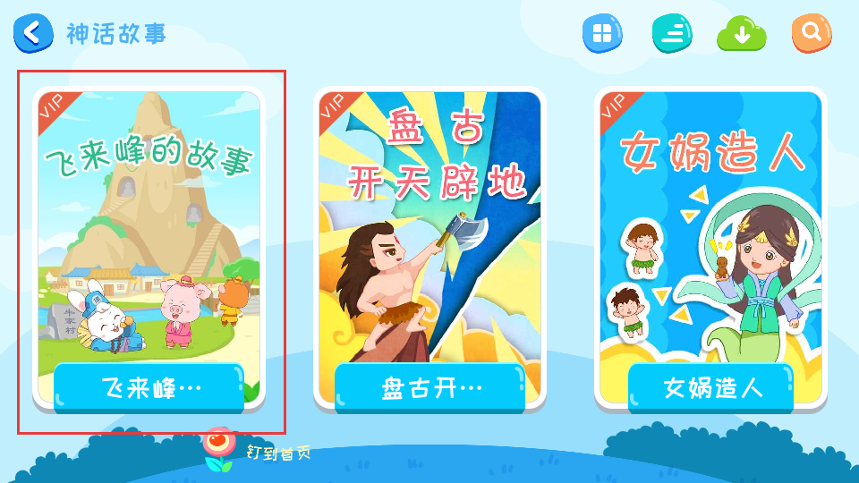 4、在神话故事列表里,点击飞来峰的故事卡片,即可查看该故事。
