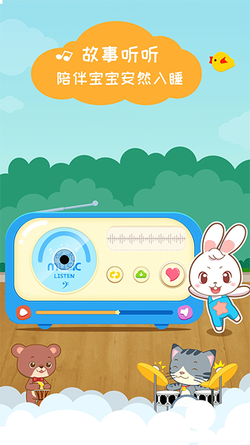 3、专业音画搭配:所有故事、儿歌等内容均配备专业配音人员录制的音频,搭配柔和舒缓的背景音乐,部分内容还结合动画呈现,提升孩子的聆听与观看兴趣。