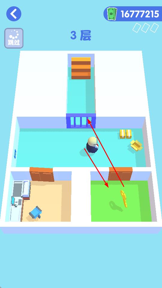 1、观察布局规划路线:进入关卡后先观察地形结构、保安巡逻轨迹与钥匙大致位置,在脑海中规划最优移动路线,避开保安高频巡逻区域,为后续走位奠定策略基础。