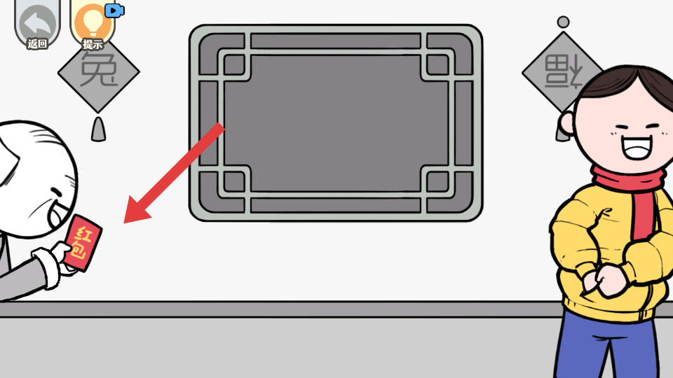 4、在春节场景中,看到箭头指向的红包时,可与发放红包的角色互动,领取红包,体验春节传统习俗相关的游戏内容。