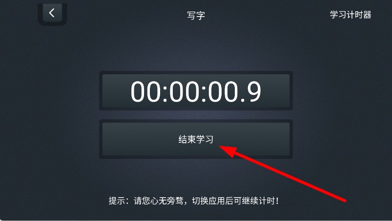 5、计时完成后,点击结束学习按钮,完成写字学习计时。