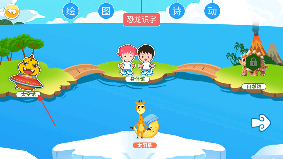2、在主界面,点击太空馆,进入太空馆学习页面。