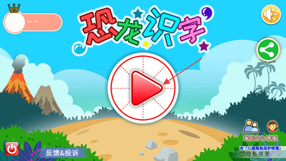 1、点击红色播放按钮,正式进入恐龙识字主界面。