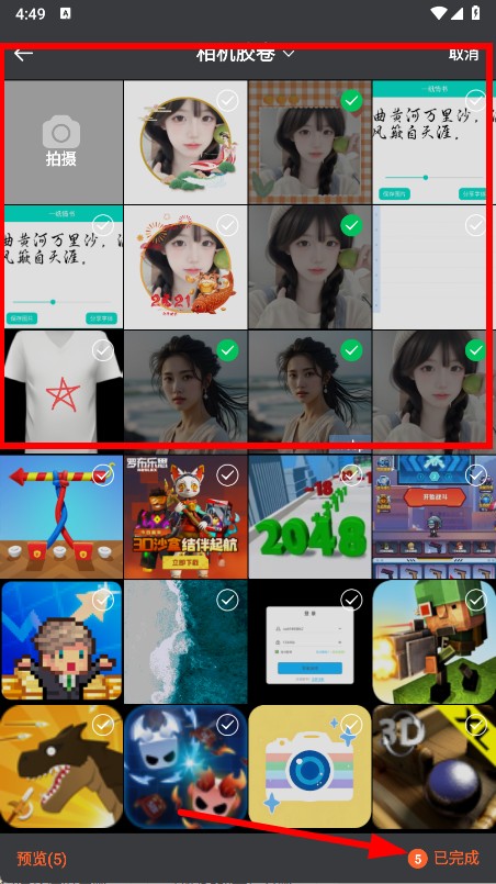 2、勾选想要拼接的图片,点击右下角已完成按钮,进入拼接编辑页面。