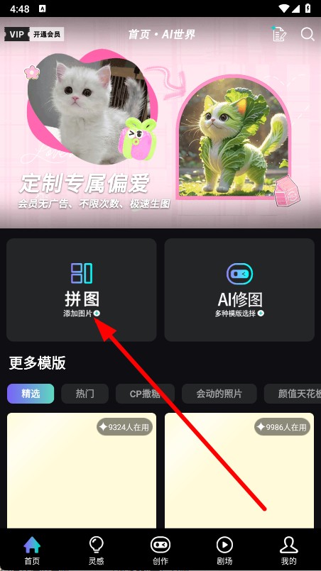 1、打开爱拼长图APP,在首页点击拼图选项,进入图片选择页面。