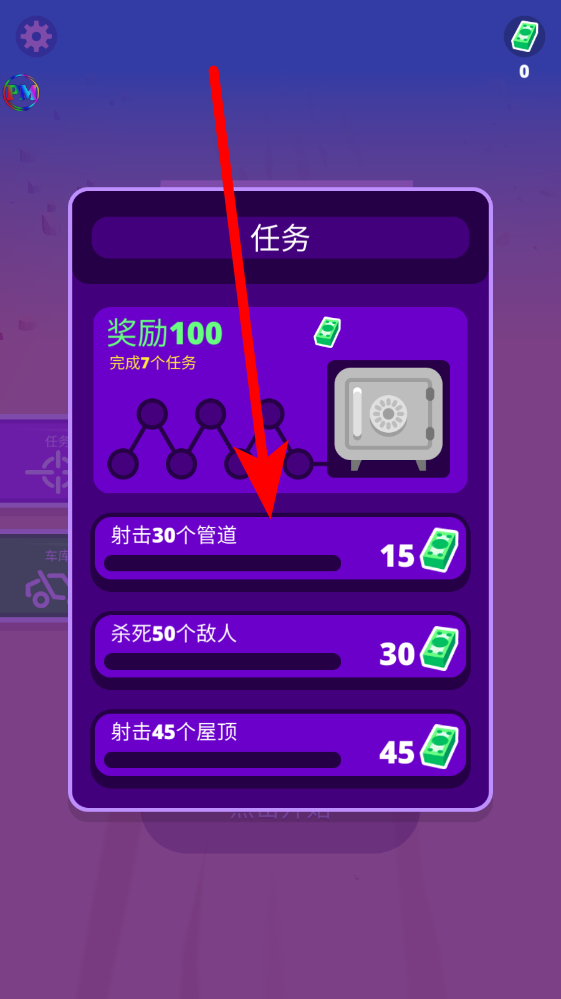 1、查看任务明确目标,进入游戏后先查看任务,领取任务看察射击一定数量管道、消灭若干敌人等任务要求,明确奖励战斗目标。