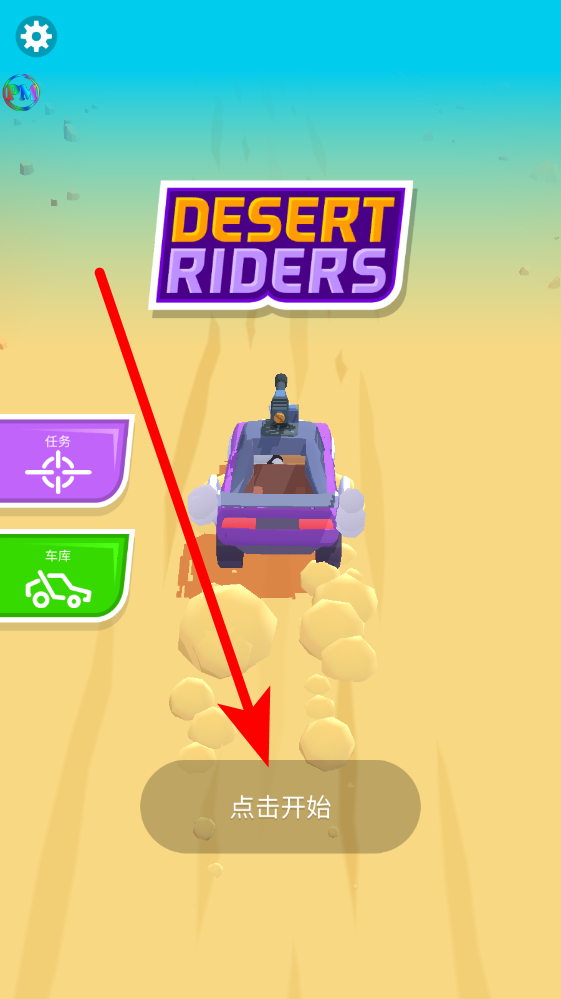 3、新人玩家点击开始进入沙漠游戏场景,选好车辆后,点击开始按钮,便能进入沙漠场景,开启在沙漠中的冒险与战斗之旅。