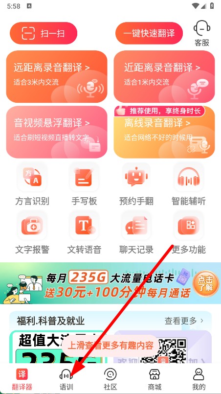 1、打开音书APP,点击底部语训选项,进入语训页面。