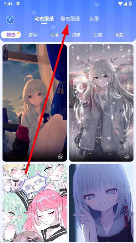 2、在壁纸选择页面,点击静态壁纸标签,进入静态壁纸列表页。