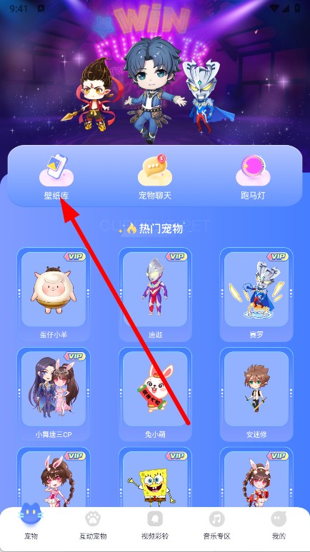 1、打开APP,在宠物页面点击壁纸库选项,进入壁纸选择页面。