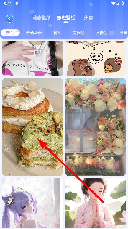 3、在静态壁纸列表页,选择喜欢的静态壁纸,点击进入壁纸详情页。