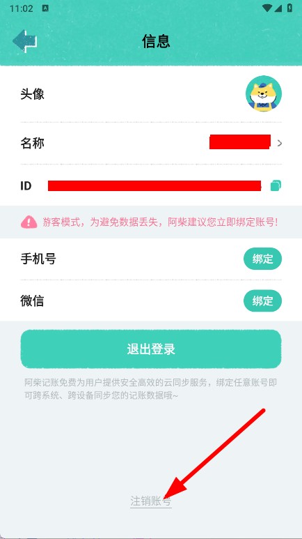 3、在信息页面,点击注销账号。