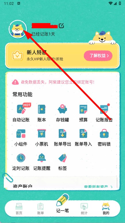 1、打开阿柴记账,点击底部我的。