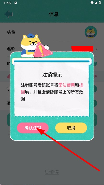 4、在弹出的注销提示弹窗中,点击确认注销,完成账号注销。