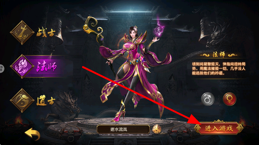1、选择不同职业,像法师这类能顷刻凝聚毁灭、弹指扭转局势的职业,确定职业后,点击进入游戏,开启奇幻战斗之旅。
