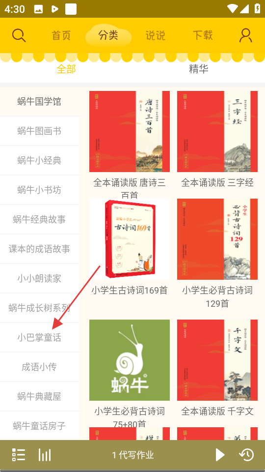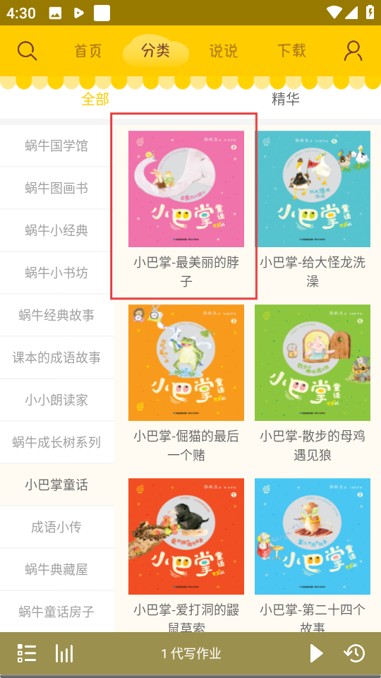 2、在分类页面,点击左侧的小巴掌童话分类,查看该分类下的内容。