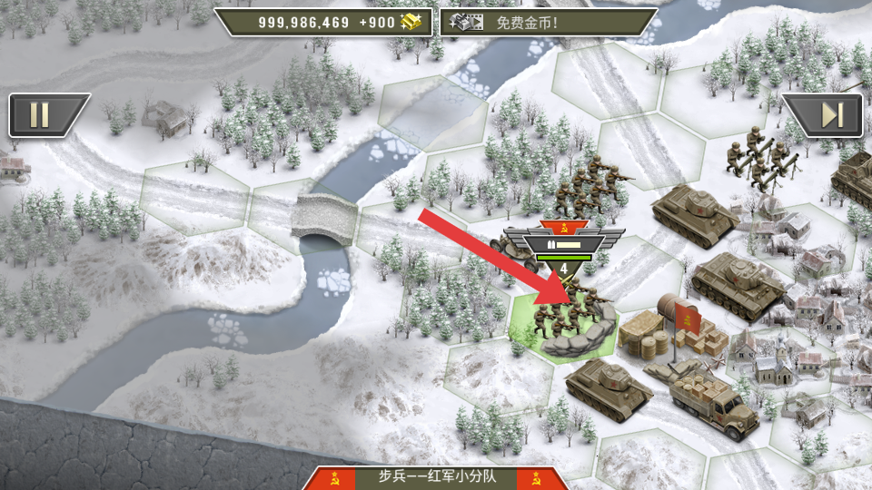 1、在雪地战场中,操控步兵单位,利用其在地形中的优势,占据战略点位,为后续战斗奠定基础。