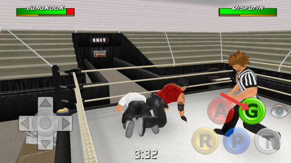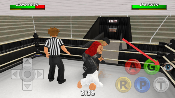 4、持续点击绿色G按键,对倒地的对手发动连续攻击,消耗其血量,争取在摔跤比赛中取得胜利。