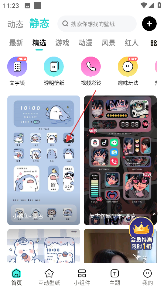 2、在静态壁纸页面,选择喜欢的静态壁纸,进入壁纸详情页。