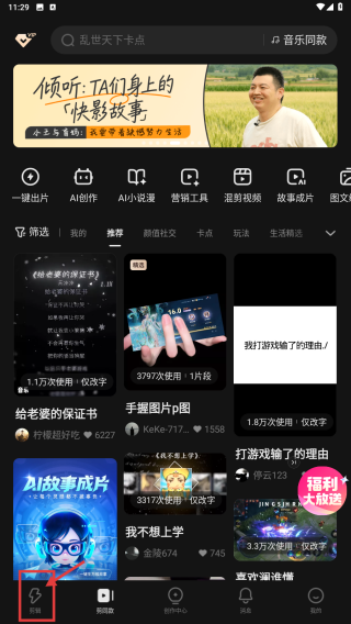 快影作为快手官方重磅推出的视频剪辑App,堪称视频创作领域的得力助手,以其全面且易用的功能,为广大创作者开辟了便捷的创作之路,对于有账号运营需求的用户,快影的创作中心更是贴心助手,能够帮助创作者挖掘灵感、跟随趋势,从而提升作品热度与粉丝互动。