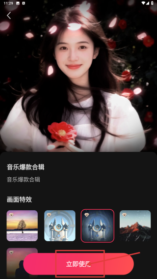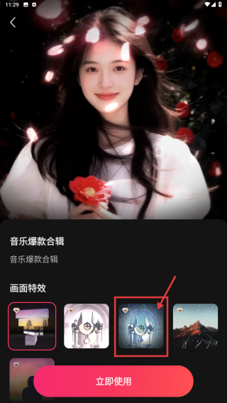 4、点击立即使用按钮,将所选画面特效应用到视频素材上。