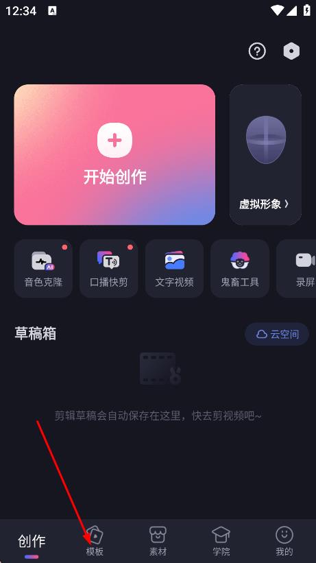 1、点击页面底部的模板,进入模板选择页面。