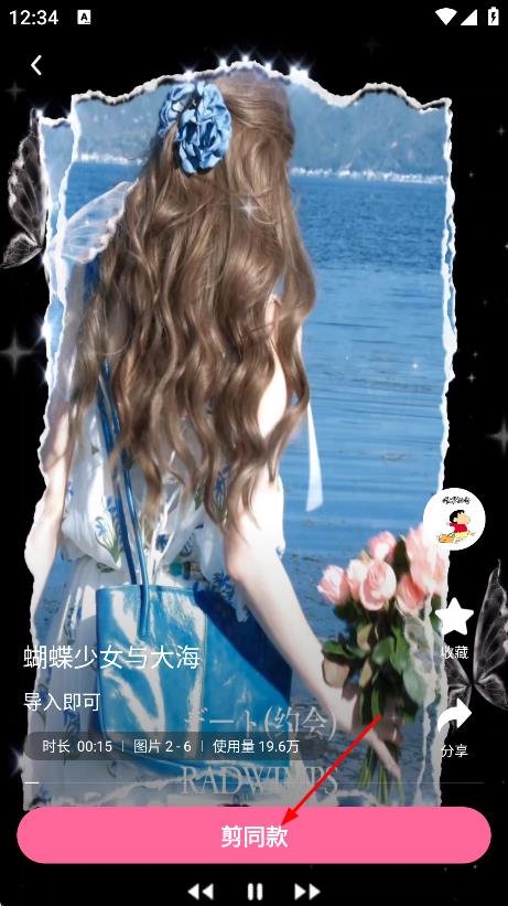 3、进入模板详情页后,点击剪同款,进入视频剪辑页面。