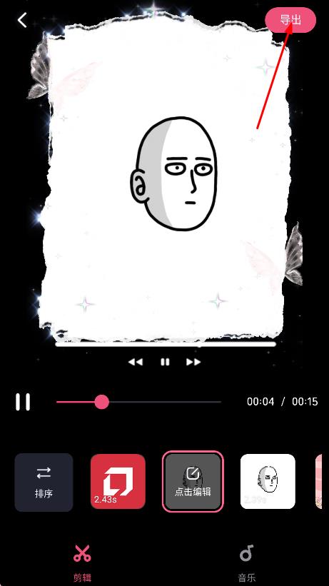 4、完成剪辑后,点击右上角导出,导出剪辑好的视频。