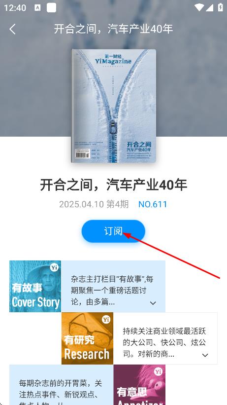 4、进入杂志详情页后,点击订阅,可订阅该杂志。
