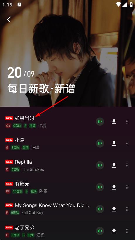 2、在每日新歌·新谱页面,点击想要查看的歌曲。