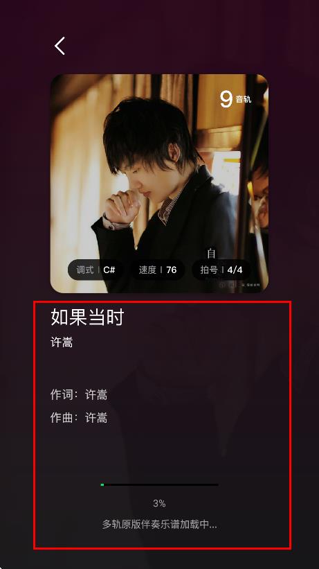 3、进入歌曲页面后,等待多轨原版伴奏乐谱加载。