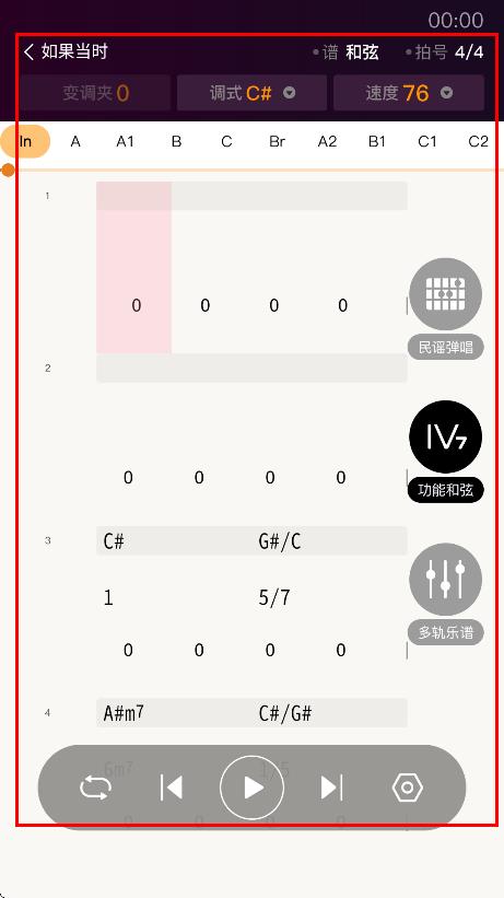 4、乐谱加载完成后,查看歌曲的谱和弦等信息,还能进行播放。