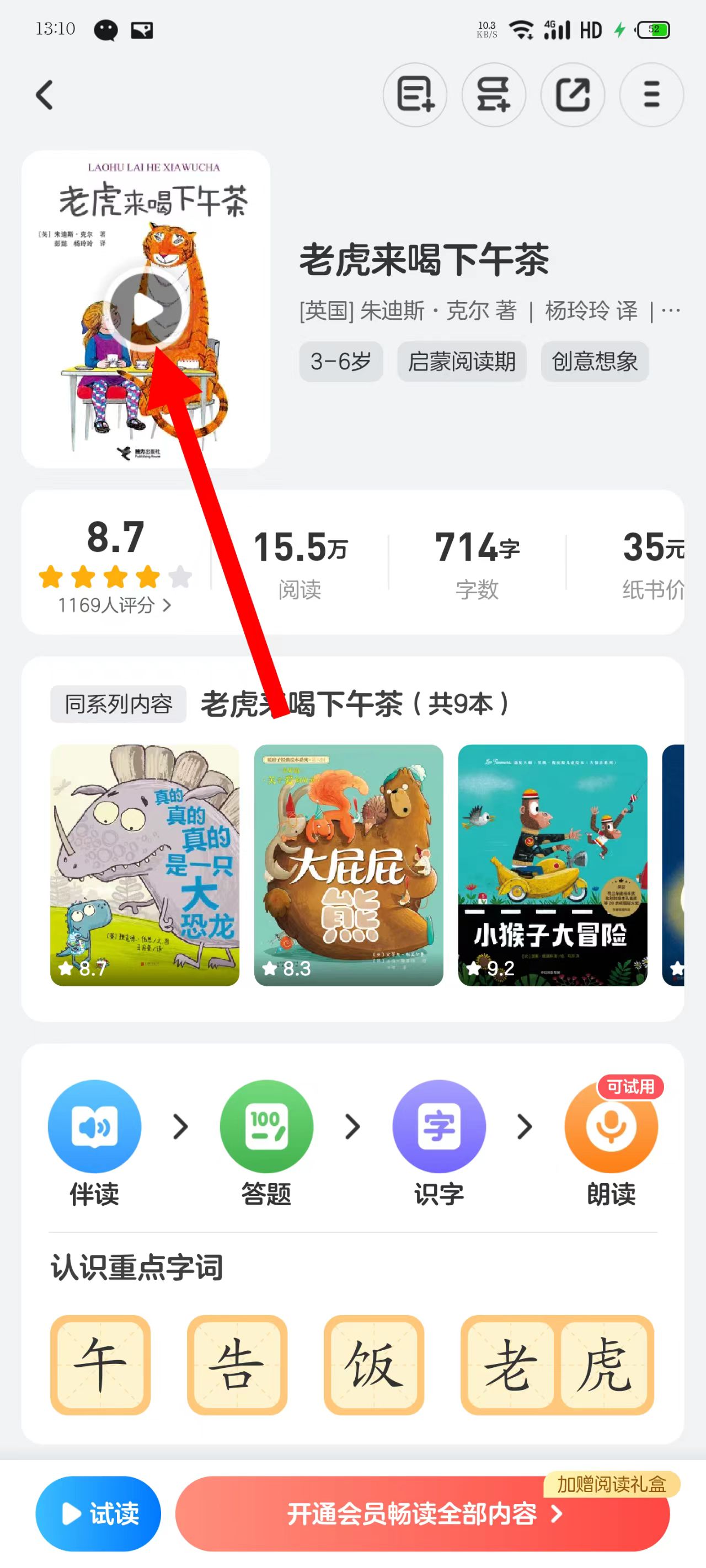 3、在合辑页面点击老虎来喝下午茶绘本,进入绘本详情页面。