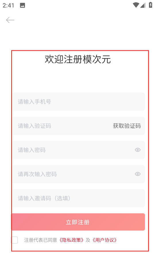 4、在注册页面,输入信息勾选协议,点击立即注册完成注册。