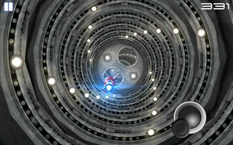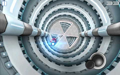 1、操控飞机在六边形隧道中飞行,瞄准中心的蓝色光圈区域,保持飞行方向,顺利通过隧道,同时留意右上角的分数变化。