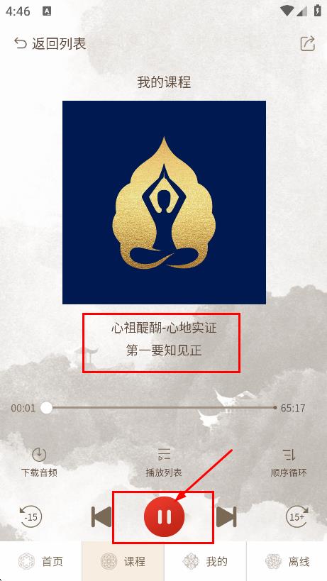 3、在心地实证音频列表页面,点击想要播放的音频。
