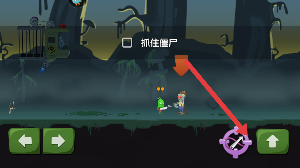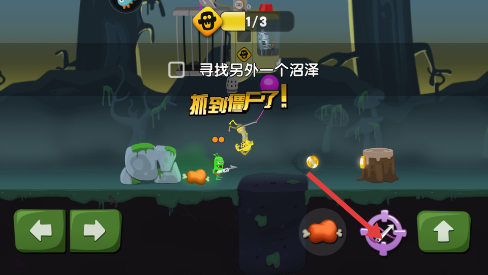 2、遇到僵尸时,使用右侧的瞄准装置发起攻击,完成了抓住僵尸的任务的目标,提升了捕捉的进度。