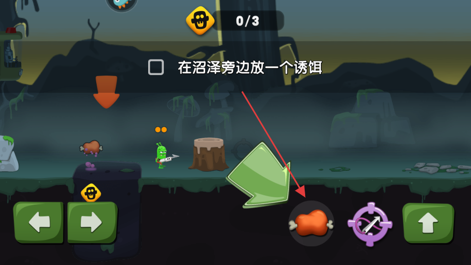 3、在沼泽旁放置诱饵如鸡腿道具,吸引僵尸,以便更高效地完成捕捉任务,同时留意诱饵的放置位置。
