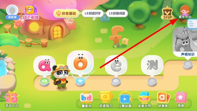 1、情景动画打造沉浸式课堂:每个拼音字母都设计成可爱卡通形象,在森林学校等主题场景中展开互动剧情,将知识融入故事让孩子自然吸收记忆。